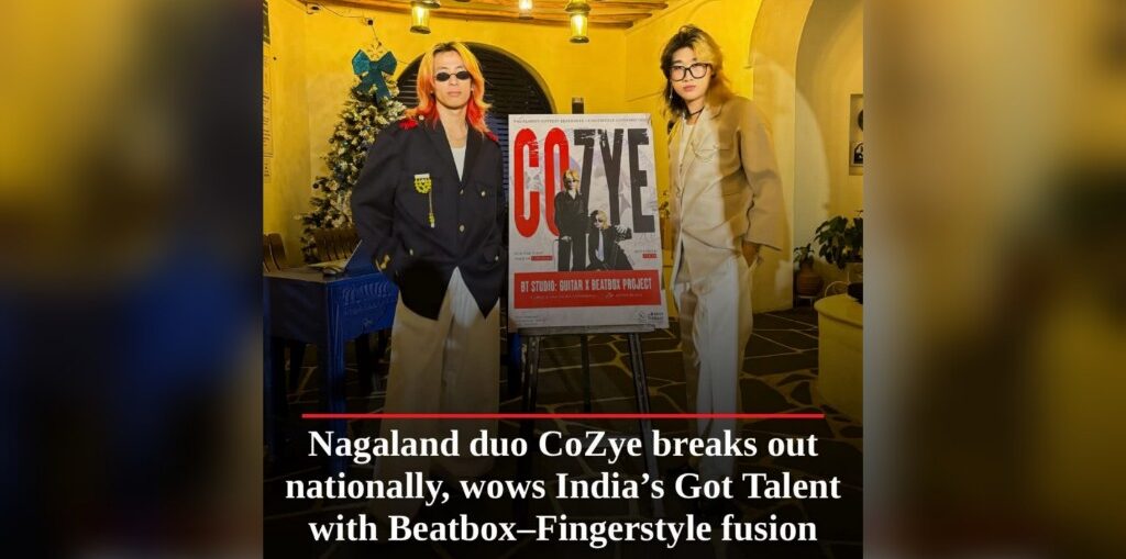 Nagaland Indie Duo CoZye Rises Nationally With Their Unique Beatbox–Fingerstyle Fusion Featured NE News Regional Beat by Akanksha - December 11, 20250 Nagaland’s emerging musical duo CoZye, featuring beatboxer Coffee and fingerstyle guitarist Zayie Zacchaeus, is rapidly becoming one of India’s most distinctive new indie acts. Known for creating a full-band sonic experience using only voice, guitar, and a loop station, the duo has earned attention nationwide for their innovation and musical precision. Coffee, a two-time Northeast Beatbox Champion, and Zayie, a regional Guitar Champion, combine their individual strengths to blend acoustic, pop, indie, and electronic elements. Their performances often include reimagined Asian pop covers alongside original compositions such as their 2025 release, “Monochrome,” which further cemented their artistic identity. Growing National Presence CoZye’s rise has been propelled by a series of high-profile showcases. The duo recently completed a sold-out residency at BT Studio’s The Beach Terrace in Chennai, where their genre-blending sets attracted strong audience appreciation. They have also taken the stage at major cultural platforms, including the Hornbill Music Festival, one of Northeast India’s most prominent music events. Their national breakthrough came with a widely discussed audition on India’s Got Talent Season 11, where the judges praised their originality, synergy, and ability to deliver a full musical experience as a two-member act. A New Sound From the Northeast CoZye’s rapid ascent reflects a growing recognition of Northeastern musicians in India’s independent music scene. Their unique approach—merging technical skill, contemporary soundscapes, and regional influences—positions them as one of the most exciting acts to watch in the country’s evolving indie landscape. Share this: Click to share on Facebook (Opens in new window) Facebook Click to share on X (Opens in new window) X Click to share on Pinterest (Opens in new window) Pinterest Click to share on Telegram (Opens in new window) Telegram Click to share on WhatsApp (Opens in new window) WhatsApp Like this:Like Loading... Related