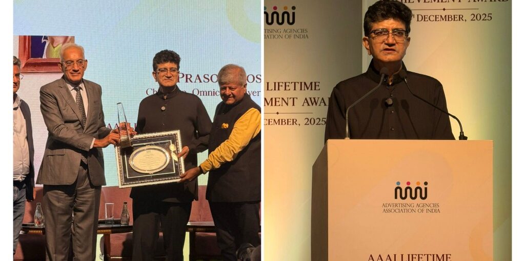 Prasoon Joshi Receives AAAI Lifetime Achievement Award, Celebrating a Legacy of Creativity and Discipline Featured Funtainment News by Akanksha - December 21, 20250 Padma Shri awardee Prasoon Joshi was conferred with the prestigious Lifetime Achievement Award by the Advertising Agencies Association of India (AAAI) at a ceremony held last night, marking a significant moment in Indian advertising and creative leadership. During the event, Srinivasan Swamy, President of AAAI, traced the history and significance of the organisation’s highest honour, explaining how the award is reserved for professionals whose contributions have shaped the industry over decades. The evening featured a specially curated video in which several of Joshi’s long-time clients paid heartfelt tributes, acknowledging his rare ability to blend creativity with purpose and impact. Friends and colleagues also took the stage to share personal anecdotes, offering insights into Joshi’s journey and the values that define his work. When it was his turn to speak, Joshi reflected on his profession as a “fusion of art and discipline,” capturing the essence of a career that has balanced creative freedom with structured thinking. He concluded his address by reciting a poem he had written earlier, bringing an intimate and reflective close to the evening. The honour carries particular weight within the industry. Despite being a Padma Shri recipient, Joshi underscored the importance of recognition from AAAI, highlighting the deep respect the association commands among professionals. The exclusivity of the award further adds to its stature—only around 35 individuals have received the AAAI Lifetime Achievement Award since its inception. Recalling a personal memory, one speaker shared how unexpected and meaningful the recognition can be, recounting a moment from 2014 when a call from then AAAI President Arvind Sharma, received during a family trip in Venice, conveyed the news of receiving the same honour. The reflection reinforced a shared sentiment echoed throughout the evening: there is something uniquely powerful about being recognised by one’s peers. Prasoon Joshi’s induction into this distinguished group stands as a testament to a career defined by creative excellence, integrity, and enduring influence—an achievement that resonates deeply within the advertising fraternity. Share this: Click to share on Facebook (Opens in new window) Facebook Click to share on X (Opens in new window) X Click to share on Pinterest (Opens in new window) Pinterest Click to share on Telegram (Opens in new window) Telegram Click to share on WhatsApp (Opens in new window) WhatsApp Like this:Like Loading... Related